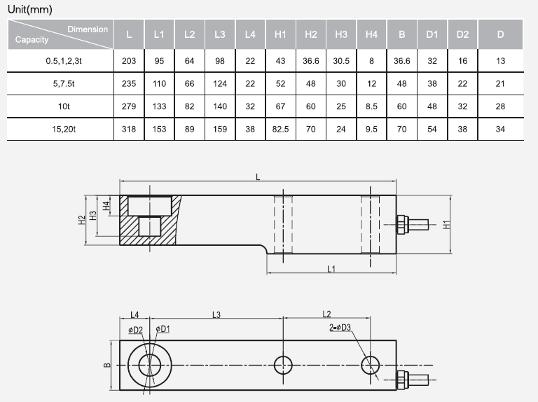 OS-104 shear beam load cell, using Weston bridge principle, alloy steel or stainless steel elastomer, with high precision strain gauge material which imported from European, using deep hole patch technology, imported glue. A high precision and high reliability weighing load cell is manufactured by fine process flow and high precision measuring equipment.